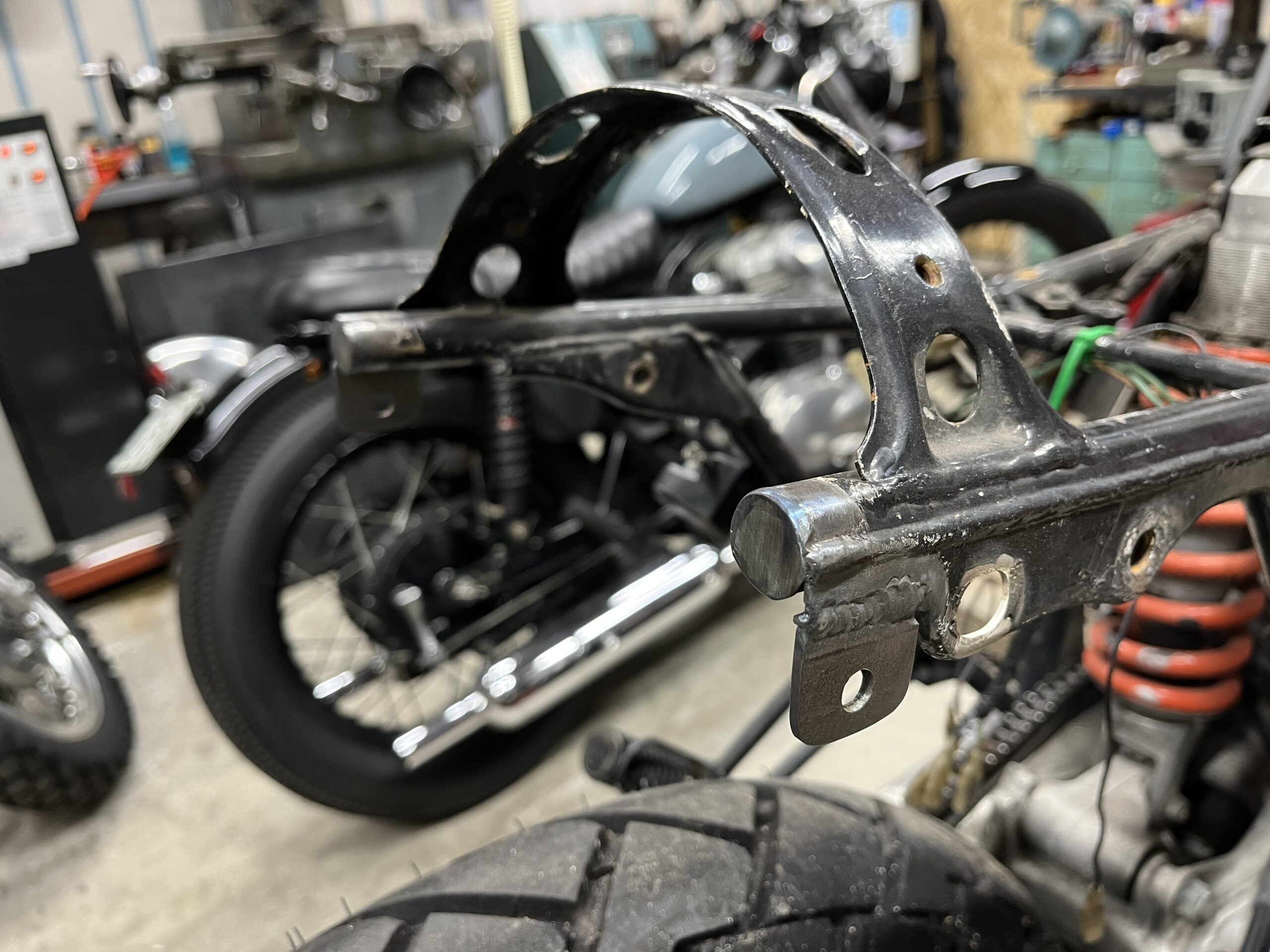 切断面に板を切り出して溶接。ウインカー取り付けステーも溶接しました
