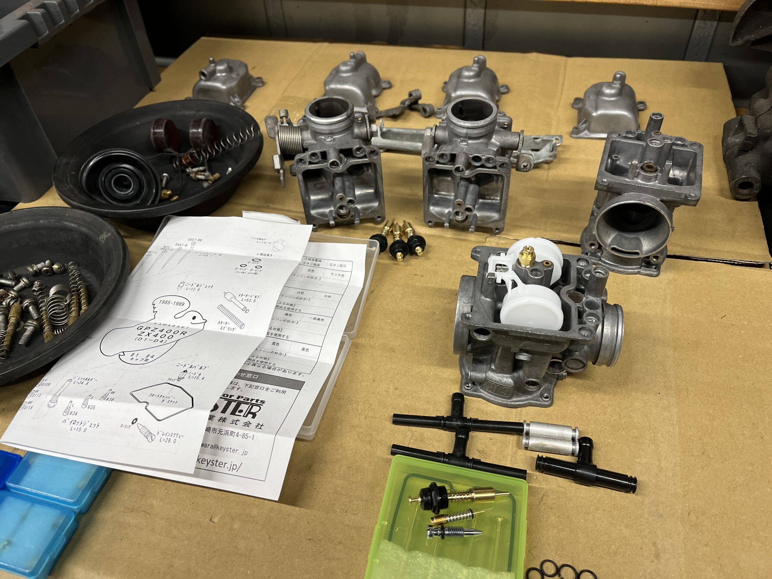 KAWASAKI GPZ400Rの整備 2 Blog 2026.01.18 洗浄しました 交換部品の組み付け クラッチの点検 ダンパーゴムの交換のためリベットを外します ボルト留めになるのでタップを立てました 交換部品類 足廻りの点検 車検取得して完成です。ご依頼ありがとうございました
