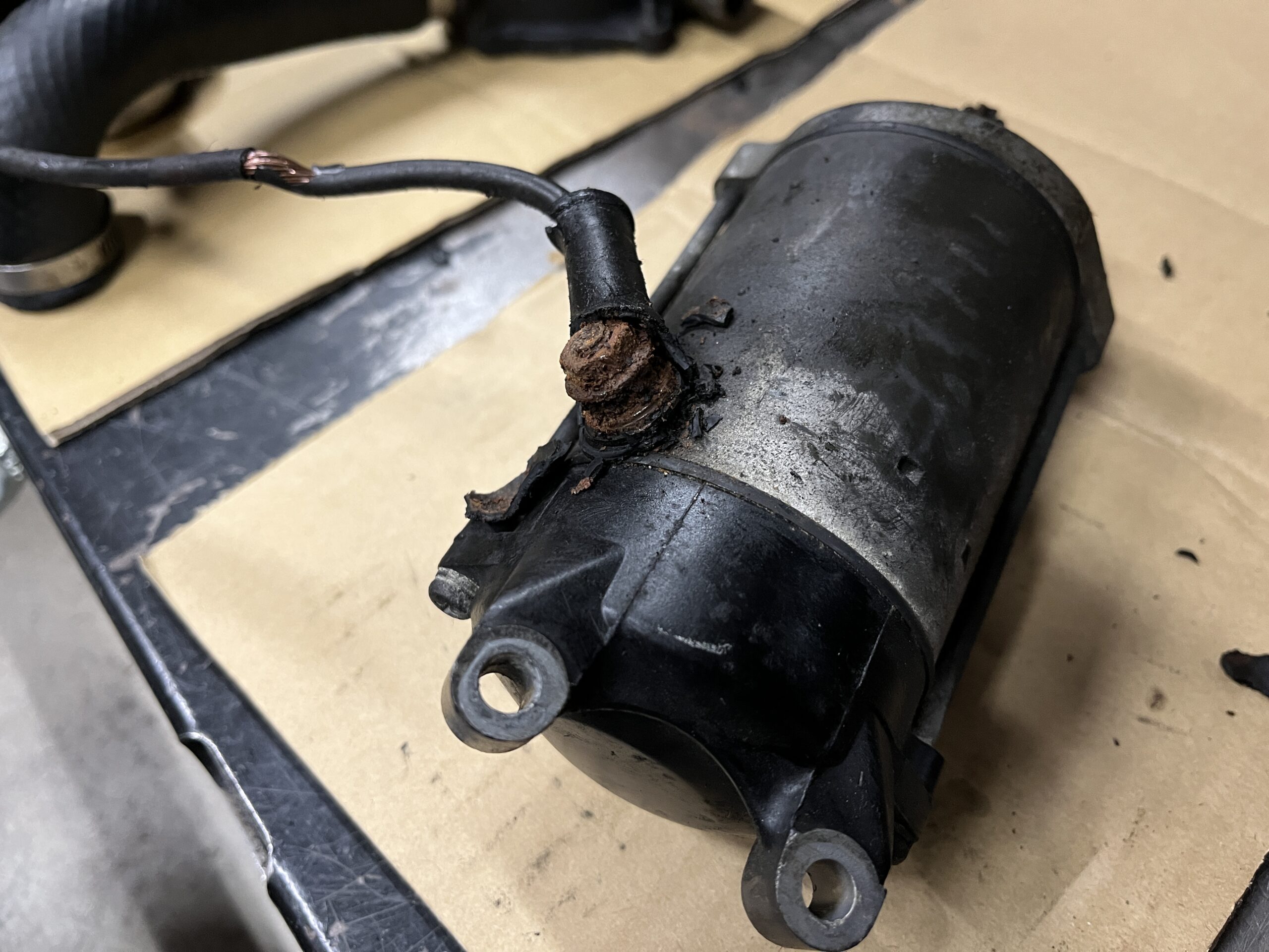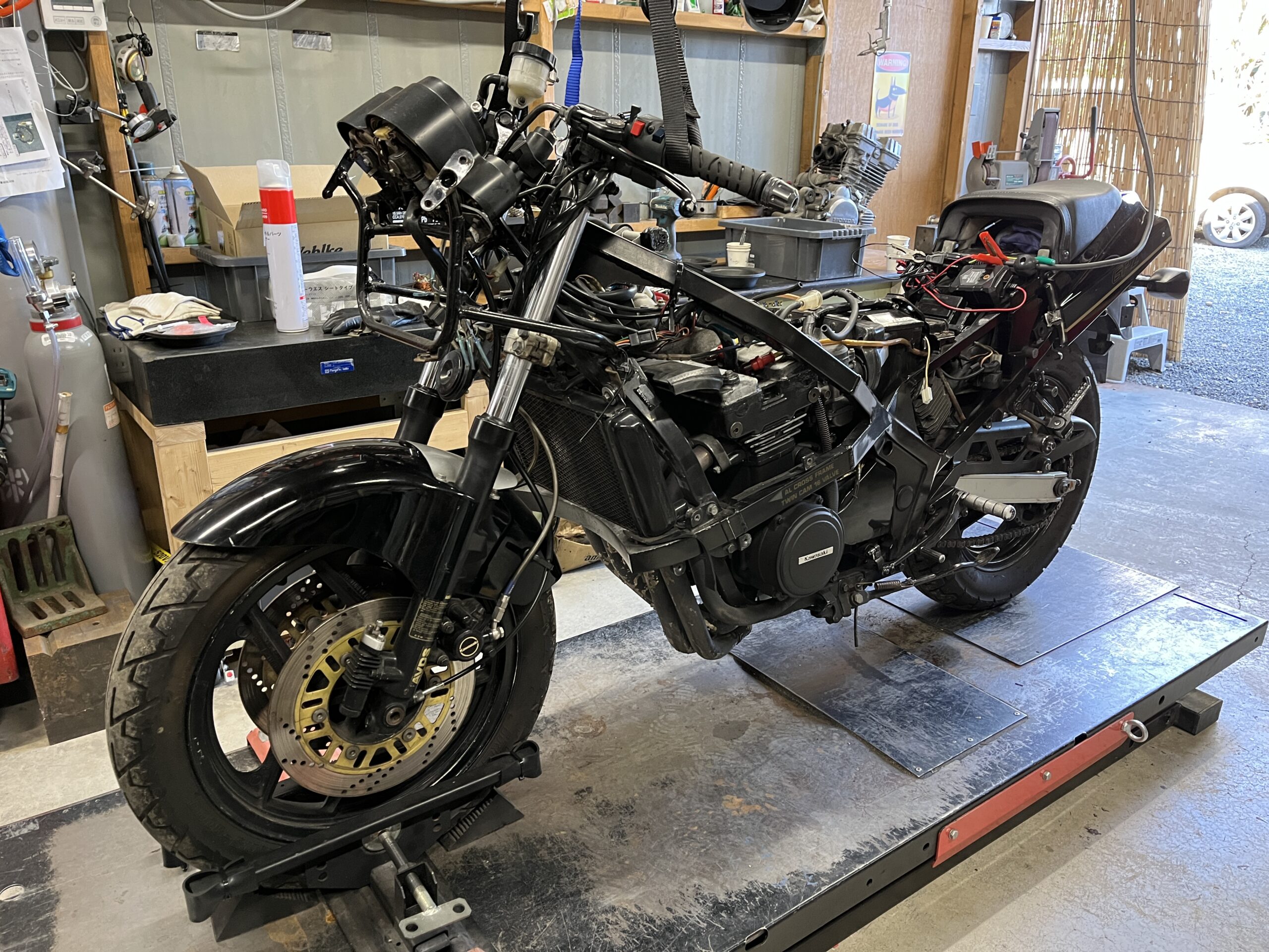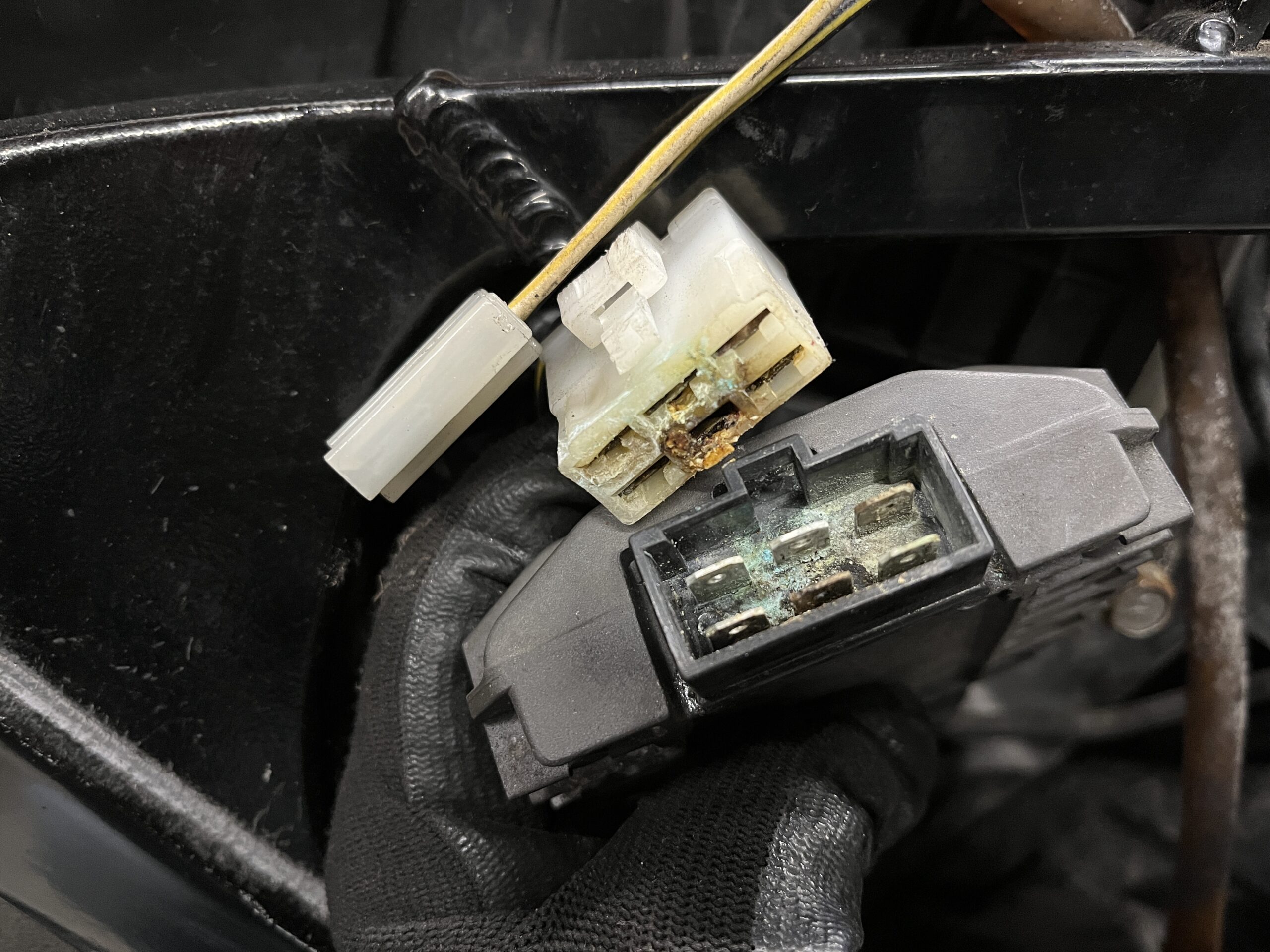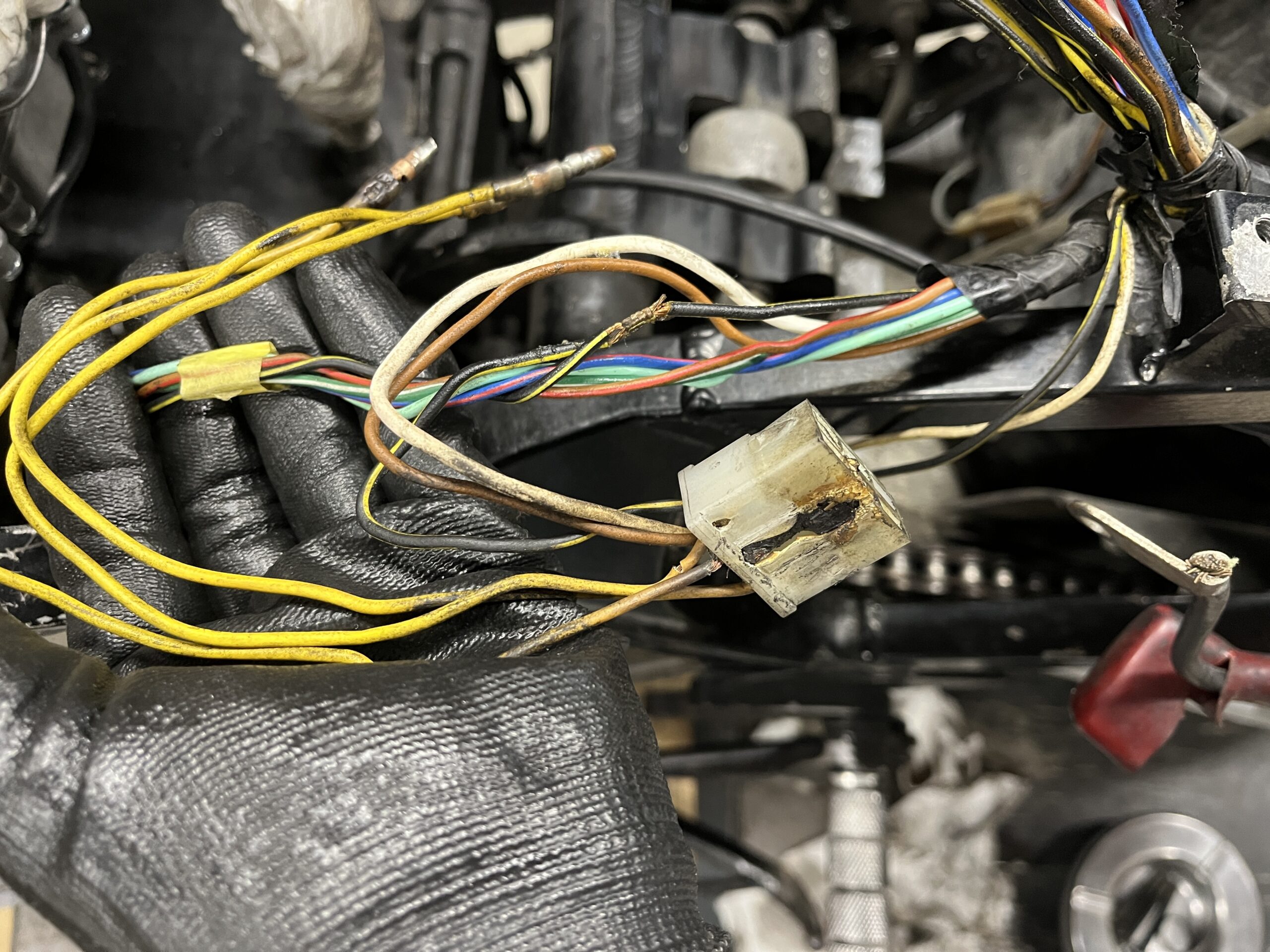 KAWASAKI GPZ400Rの整備 1 Blog 2025.12.17 GPZ400Rの整備と車検取得をご依頼いただきました。 レギュレータの接続部 コネクタ側は溶けてしまってます 新しく制作しました セルモータの配線。被覆剥けと腐食 こちらも新規製作 次回はキャブ周りからはじめます